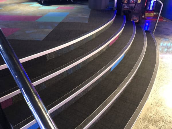 Tredsafe was able to undertake this stair nosing refurbishment project which included custom coloured inserts for the stadium. A total of 3.4km of custom coloured teal and purple insert (Hornet’s team colours), were installed on the stairways of the arena. This was nomianted for the ‘Best Branded Environments’ – for the Spark Awards, part of Fuse Alliance.
